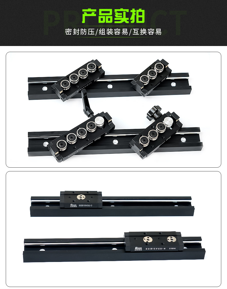 • 內置雙軸心直線導軌滑塊SGR/B10 15N 20 25 35黑色鋁型材滾輪方滑軌
