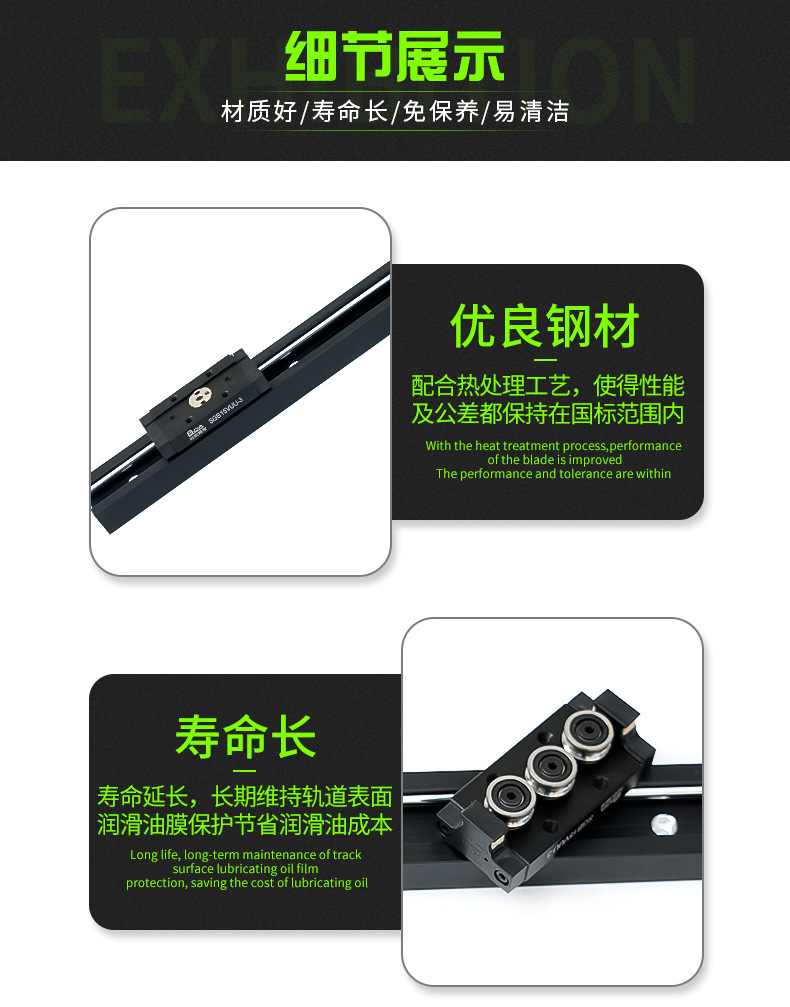 國產高速靜音鋁型材SGR10N 15V 20 25 35內置雙軸心直線導軌滑塊