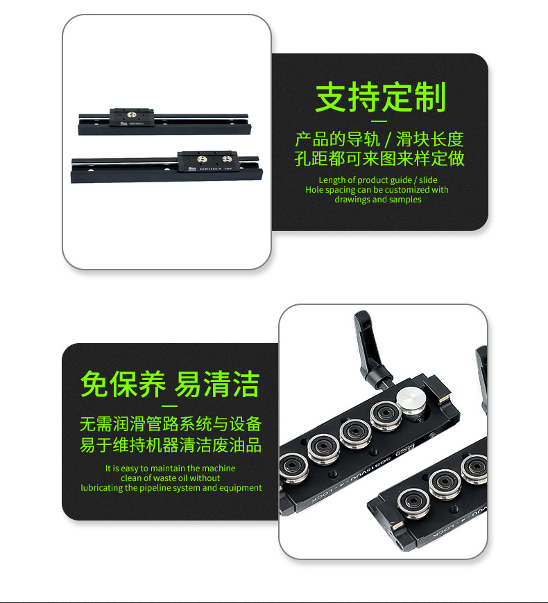 • 鎖緊定位內置雙軸心黑色SGR/SGB系列鋁合金型材直線導軌滑塊滑軌